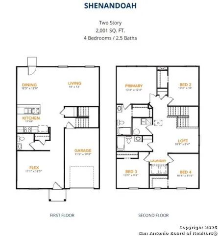 MLS# 1927727 - Built by NHC - Ready Now! ~ The Shenandoah Plan from our Freedom Series combines functional design with ample space, making it perfect for families of all sizes. This 2-story home offers 4 bedrooms, 2.5 bathrooms, a spacious loft, and 2,001 square feet of versatile living space. Step inside and you'll first discover a flex room, ideal for a home office, playroom, or hobby space. Continuing down the hallway, a conveniently located half bathroom provides added ease for guests. At the heart of the home, the open-concept kitchen, complete with an island, overlooks the dining area and family room, creating the perfect setting for family time and entertaining. The staircase, located across from the kitchen, provides access to the upper level. The upper level is designed with comfort and convenience in mind. It features a private primary suite with an en suite bathroom and walk-in closet, three secondary bedrooms, and a full bathroom. A spacious loft offers additional flexible space for a game room or cozy retreat. The laundry room is also on this level, making chores a breeze.