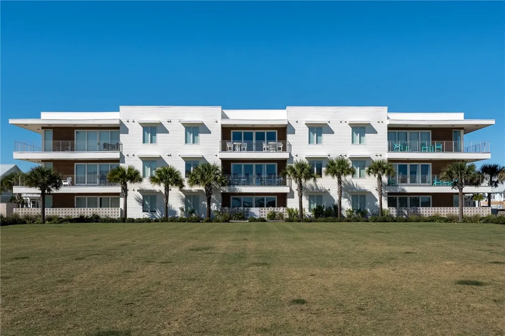 Crafted by acclaimed architect Jay Corder, this striking mid-century modern residence delivers a seamless blend of architectural design and carefree coastal living. Set within the exceptional Pool Residences at Sunflower Beach, this home is one of just three three-bedroom offerings, a rare opportunity in a boutique resort setting. The interior strikes a perfect balance between design and livability, showcasing Bertazzoni stainless steel appliances, a gas cooktop, luxury vinyl plank flooring, and spa-like, fully tiled baths. Custom built-ins in the dining area, laundry, and bunk room add thoughtful storage and architectural interest. Tastefully furnished and fully turn-key, the residence is ready for immediate enjoyment. Home owners & guests will enjoy secure, controlled building access, climate-controlled interior corridors, elevator service, and a rare oversized 10' x 10' private storage room with built-in shelving—a premium upgrade valued at $12,000 and conveyed with the condo. Step onto the balcony and welcome tranquil sunrise views overlooking the resort pool and state-of-the-art fitness center—an inviting start to each coastal morning. Set in the heart of Sunflower Beach, ownership includes direct beach access, resort-style pools, on-site dining, and a full collection of amenities ideal for both personal enjoyment and investment potential.