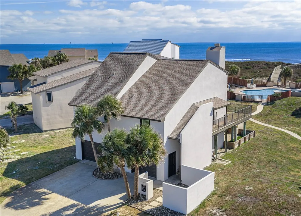 Welcome to The Lookout, a thoughtfully updated coastal retreat located inside the gated, palm-lined community of Admirals Row. Perfectly positioned at the center of the community, this 3-bedroom residence overlooks the pool, dunes, and beach crossover, offering elevated Gulf views and effortless access to the shoreline. The home is considered a detached condo and has been extensively updated, with interior renovations completed in 2021 while preserving the original teak flooring that adds warmth and a subtle mid-century modern character. The main living area features soaring cathedral ceilings and a wall of windows spanning the living and dining spaces, filling the home with natural light and coastal views. Automatic roll-down shades are installed throughout for comfort and convenience. The updated kitchen is both functional and stylish, and the main level also includes two guest bedrooms and two full bathrooms. The entire third floor is dedicated to the primary suite, offering stunning ocean views, a spacious walk-in shower, and double vanity—creating a private, elevated retreat. The finished first floor provides exceptional flexibility with bunk space, a secondary living area, a full bathroom, and direct access to a private, turfed patio—an ideal shaded and breezy outdoor space that is also perfect for pets. Additional highlights include a recently repainted exterior, an onsite caretaker, and a community that allows short-term rentals, making this an excellent primary residence, second home, or investment opportunity. Admirals Row offers a rare combination of privacy, coastal proximity, and low-density living in a sought-after beachfront setting.